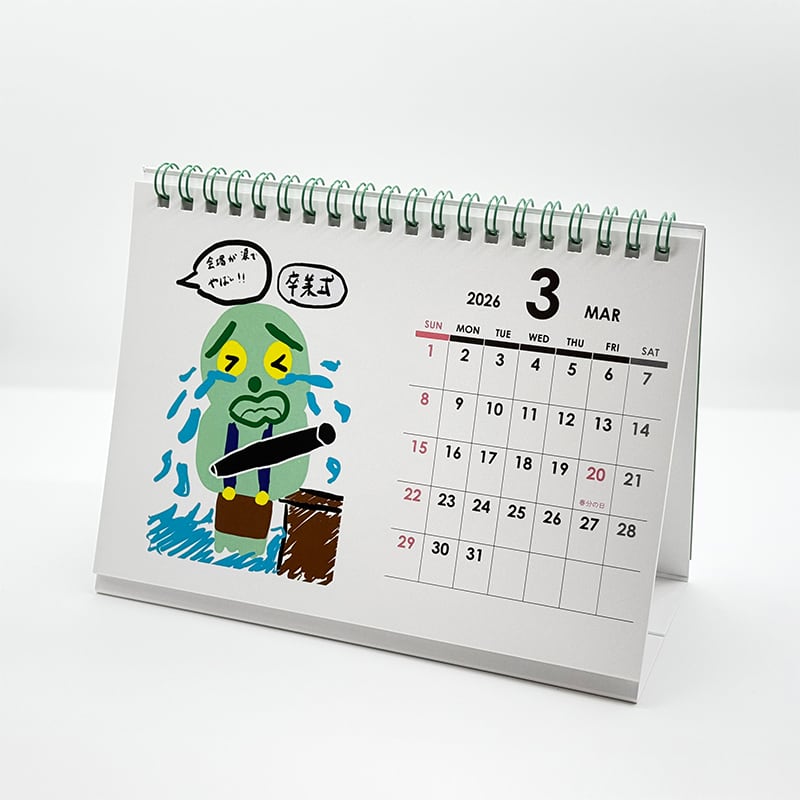 きおきおが1枚ずつ手で描いた、アーティスティックな卓上カレンダー。#落書きではない #念押し 机に置きやすいちょうど良い存在感で、仕事場や勉強机になじみます。心を込めて毎月のイラストをきおきおが描きました!